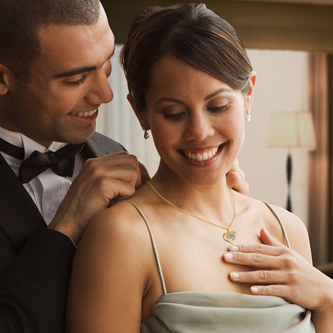 Now you can tell her you love her even more, every single day, with this beautiful gift. Picture her face lighting up when she sees the sparkle of genuine diamonds. Imagine the shimmering look in her eyes when she realizes you customized this one-of-a-kind gift with both of your birthstones and had both of your names elegantly engraved -- so it's truly unique.